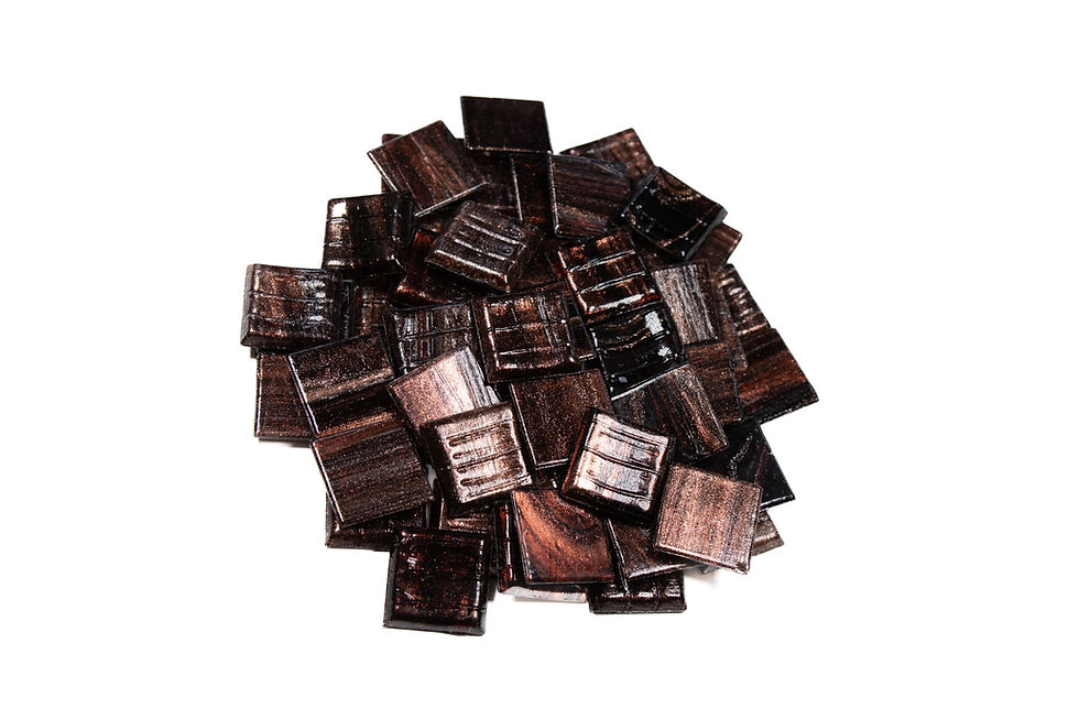 Magically flecked with copper and gold, gemme tiles can be used to create dramatic and scintillating highlights. Introducing metallic speckles and veins into glass tiles was a skill first mastered on the Venetian island of Murano. The technique involves dropping small quantities of coloured enamel granules and aventurine glass (a compound containing copper- and other metallic-crystals) into molten glass in a highly controlled manner. These artisan techniques are still followed in Italy, particularly at our supplier, Bisazza, and have recently been adopted by Chinese makers to great effect.