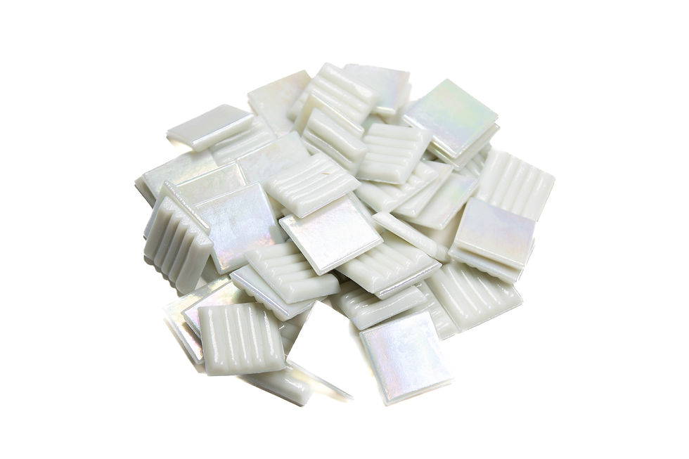 Iridescent glass, with its mother-of-pearl or petrol-spill sheens, can make for magical effects in mosaic. The phenomenon of iridescence occurs naturally when glass weathers and its chemical compounds interact with those in its surroundings. The effect, which is often seen on Roman glass which has been buried for centuries, fascinated Louis Comfort Tiffany when he toured the great museums of Europe in the 1860s. He spent several years perfecting and patenting a process that could create iridescence in an industrial setting and released his first 'Favrile' glass in 1894. It caused a sensation, and that peacock sheen still has great appeal today. Modern glass-makers achieve the look either by holding glass in an oxygen-reduced furnace and surrounding it with reactive gases, or by spraying still-hot glass with metallic salts.